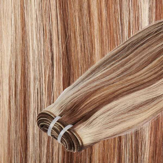Echthaar-Tressen 100 Gramm Länge: 45 cm / 18 " Farbe: #27/613 kupferblond/pure-blond